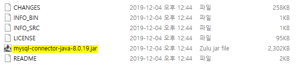 설치 경로에 따라 약간 상이할 수 있겠지만, MySQL이 설치된 경로 내부에 Connector J 8.0 이라는 폴더 안에 mysql-connector-java-x.x.xx.jar 파일이 존재하는데 이 때 버전은 설치한 MySQL 버전에 따라 상이할 수 있다.